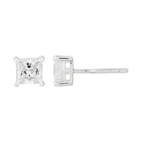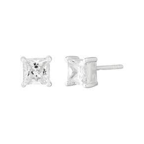 Zircônia cúbica lapidada em princesa forma esses brincos que brilham como um diamante em suas orelhas. Perfeito para qualquer ocasião. Os brincos medem 3/16 por 3/16 polegadas. As peças vêm com selos de qualidade de prata esterlina “.925" como símbolos da qualidade garantida do produto.