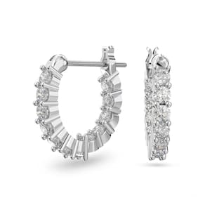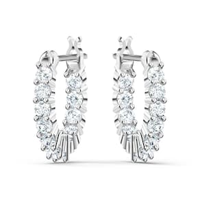 Swarovski Coleção de joias de colar e brincos de cristal de pedra, Zircônia cúbica, Zircônia cúbica - Deslumbrante e elegante: os brincos de argola Matrix Vittore Mini Hoop combinam a precisão e a qualidade dos cristais Swarovski brilhantes com uma configuração banhada a ródio, para um acessório atemporal e refinado - Brilhante vívido: um aro leve e delicado com cristais brancos com um brilho sutil, colocado em um poste banhado a ródio com um fecho de dobradiça para um ajuste seguro que é fácil de usar com qualquer roupa - Projetado para durar: as joias Swarovski manterão seu brilho ao longo do tempo quando práticas simples de cuidado forem observadas; remova antes de entrar em contato com água, loções ou perfumes para prolongar a vida útil de suas joias - Elegante e atraente: a versatilidade simples desses brincos os torna um acessório moderno para o dia a dia, uma adição glamorosa para ocasiões mais formais ou um presente encantador para sua amada - Itens entregues: 1 x conjunto de brincos Swarovski Matrix Vittore Mini Hoop perfurados com cristais Swarovski brancos, pino de metal banhado a ródio e fecho de dobradiça, completo com caixa de brincos Swarovski