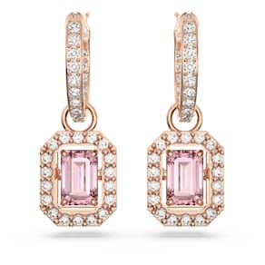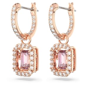 Brincos Swarovski Una Drop, corte octógono, cristal rosa, acabamento em tom de ouro rosa