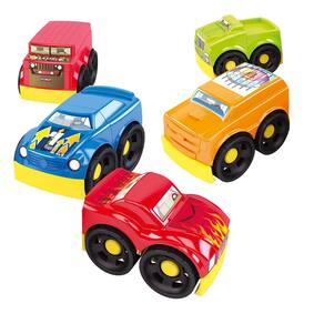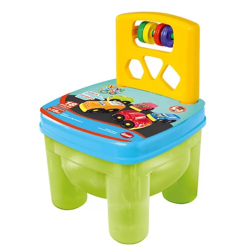 Conteúdo Da Embalagem:1 Cadeira, 3 Peças Geométricas, 5 Chassis Com Rodas, 5 Traseiras, 5 Cabines, 1 Caçambinha, 1 Betoneira E 1 Cartela De Adesivos.