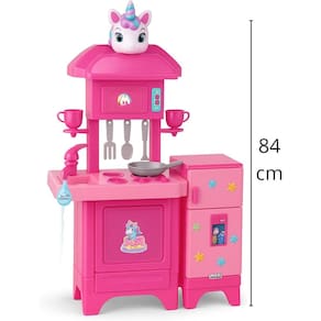Prepare-se para um mundo encantado de brincadeiras com a Cozinha Completa Unicórnio! Com um ensaboador que solta água de verdade, a diversão fica ainda mais real e mágica.A cozinha vem equipada com tudo que a criançada precisa para criar receitas deliciosas: 02 pires, 02 xícaras, 02 colheres, 02 garfos, 02 facas, além de utensílios incríveis como 01 espumadeira, 01 facão e 01 concha.Perfeita para estimular a imaginação, a coordenação e a autonomia dos pequenos enquanto eles brincam de chef!Porque na cozinha unicórnio, a diversão é sempre cheia de cor e encantamento!Informações do produto:Idade Recomenda: +36 meses.Altura Aproximadas do fogão: 72 cm.Altura Aproximadas da geladeira: 40 cm.Pilha/Bateria: Não.Composição/Material: Polipropileno.Fabricante: Magic Toys.Certificado: CE-BRI/IQB 54818/21-039.-produto lacrado e disponível em estoque.-Seguro contra extravio incluso no envio.-As cores podem variar conforme o lote de fabricação.-Informações sob responsabilidade do fabricante e/ou fornecedor.
