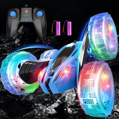 Carro de controle remoto recarregável: equo com duas baterias recarregáveis de 3,7 V 500 mAh de alta potência, cada bateria pode durar cerca de 30 minutos de diversão, o que garante que seus filhos tenham uma diversão duradoura ao receber este carro acrobático de controle remoto de 2,4G.