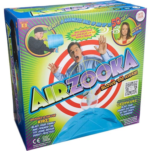 Estrague seus amigos com o Brinquedo Airzooka. Destinado a se tornar um clássico, Airzooka é um dispositivo único portátil que sopra uma "bola de ar" inofensiva em direção a qualquer objeto ou pessoa. Aponte para seus amigos durante um jogo animado de Air Tag ou simplesmente tente sua sorte no treino de tiro interno. Porque dispara no ar você nunca vai ficar sem diversão. Sem necessidade de baterias ou eletricidade, a Airzooka opera simplesmente puxando e liberando um lançador de ar elástico embutido. Airzooka também possui um site pop-up para maior precisão. Ria com diversão enquanto estraga o cabelo de alguém, baba a camisa, ou simplesmente os sopra do outro lado da sala. Airzooka é o brinquedo de mãos dadas e com força infantil que sopra uma bola de ar inofensiva em direção a qualquer objeto ou pessoa. Recomendado para crianças de 3 anos ou mais.