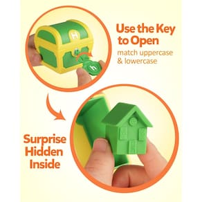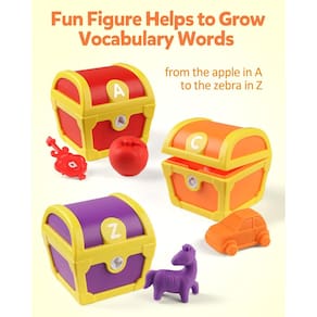 Aprenda o alfabeto com diversão e facilidade. As crianças aprenderão as letras e o alfabeto enquanto usam as teclas certas para abrir os baús correspondentes. Dentro de cada baú há um tesouro surpresa. Incluindo 26 chaves, 26 baús e 26 itens surpresa. Este brinquedo também ajuda as crianças a desenvolver reconhecimento de cores, habilidades motoras finas e coordenação óculo-manual. - Jogo Alphabet Treasure Hunt: Existem 26 chaves e 26 caixas de tesouro contêm 26 itens diferentes, cada chave e o cadeado na caixa foram moldados com uma letra, então as crianças precisam encontrar a chave certa para abrir a caixa e colocar o tesouro dentro! Este é um jogo divertido para as crianças aprenderem o alfabeto e cultivarem habilidades motoras finas. - Construa vocabulário inicial: cada tesouro dentro da caixa é um item iniciado com a letra correspondente, por exemplo, girafa na caixa de letras G, ajuda as crianças a aprender palavras do vocabulário de animais, plantas e outras coisas comuns, desde a maçã em A até a zebra em Z com brincadeiras práticas. Este brinquedo é divertido de brincar e fácil de aprender! - Recurso de ensino divertido e prático: você pode colocar moedas, doces ou qualquer coisa que quiser na caixa como recompensa, quando as crianças encontrarem a chave certa para abrir a caixa, elas podem pegar o tesouro! Esta é uma ótima ferramenta de ensino para pais e professores recompensarem e incentivarem as crianças depois de fazerem um bom trabalho! - Seguro para as crianças brincarem: Este divertido brinquedo interativo de aprendizagem do alfabeto é feito de material inodoro e de qualidade com superfície e borda lisas, é durável e não desbota facilmente e o tamanho é perfeito para mãos pequenas. Desbloqueie a diversão motora fina e novas habilidades de classificação e combinação com este jogo de caça ao tesouro agora! - Presente surpresa para crianças: Este jogo de caça ao tesouro é muito divertido e pode manter seu filho entretido por horas! É um ótimo presente para festas, aniversários, feriados, Natal e muito mais. Pode ser jogado por várias crianças para aumentar suas habilidades sociais e se divertir juntas!