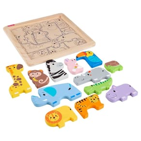 O Wooden Animal Puzzle da Fisher-Price oferece uma diversão selvagem de encaixe de formas e narração de histórias para as toddlers. Fabricado com madeira de fontes certificadas pelo FSC (FSC-N004566), este quebra-cabeça de madeira inclui 12 blocos temáticos de animais que os meninos podem encaixar no tabuleiro ou posicionar na vertical para brincar de contar histórias. O prático tabuleiro de armazenamento traz orientações que ajudam os meninos a organizarem os animais nas espaços correspondentes. As cores e as decorações podem variar.