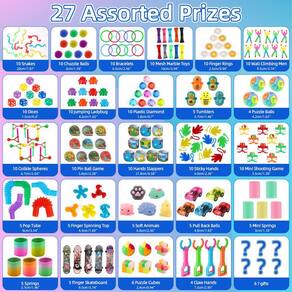 - Caixa colorida bonita e de alta qualidade: presente muito decente para crianças - elas ficarão animadas e aproveitarão esses prêmios e brinquedos por muito tempo.