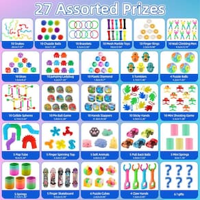 - Caixa colorida bonita e de alta qualidade: presente muito decente para crianças - elas ficarão animadas e aproveitarão esses prêmios e brinquedos por muito tempo.