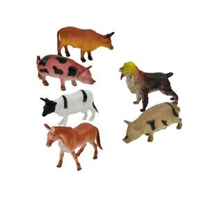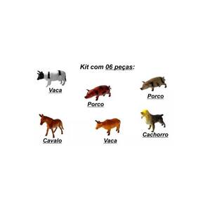 - material: plástico de alta qualidade - animais: 02 vacas, 02 porcos, 01 cavalo e 01 cachorro. - dimensões das miniaturas: variam entre 6,5cm a 13cm de altura e 12cm a 13cm de comprimento. - cores: variadas e vibrantes, conforme as características reais dos animais Homologação Inmetro: CE-BRI/IQB 006417 54754/21-002