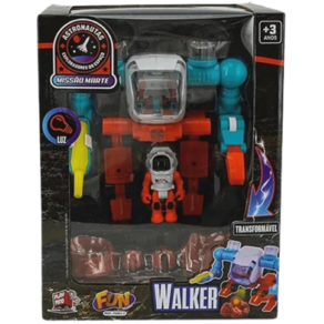 É um veículo-robô explorador, que emite luz, com acessórios.Contém:- 01 Explorador Mars Walker;- 01 Astronauta com Mochila;- 02 Pequenos recipientes;- 02 Pedras que brilham no escuro;- 01 Poço d'água;- 01 Pipeta para coletar água;- 01 Pilha de pedras.Marca: FunCódigo de barras: 7908489400935Modelo: F00813Idade: + 3 anosCertificado: INMETRO ce-bri/innac-01637-11a nbr nm 300/2004 ocp 0046