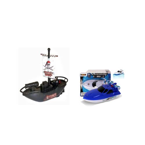 As brincadeiras na água, piscina, banheiro, áquario e balde ficarão muito mais divertidas!!Barco Lancha Policial à motor de brinquedo e Navio Pirata