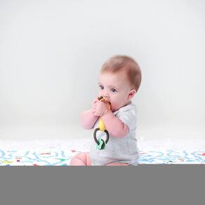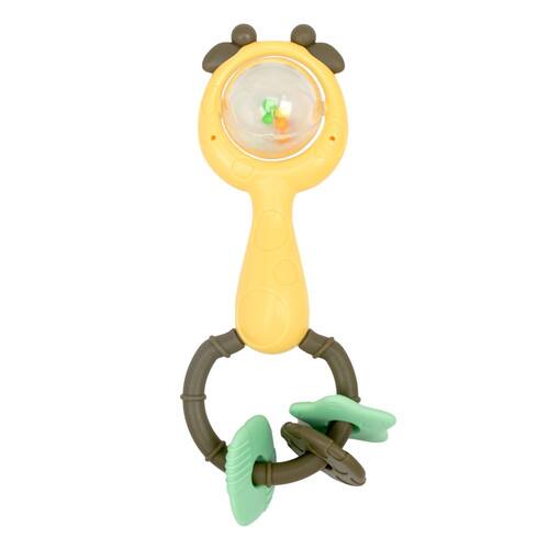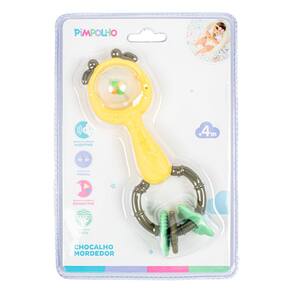 O chocalho mordedor para bebê Pimpolho em formato de girafa e bola giratória, possuem partes macias de silicone e em formato de argolas. que podem ser utilizadas como mordedor pelo bebê aliviando as dores do crescimento dos dentes. Em cores amarelo e verde que atraem a atenção do bebê e bolas internas que produzem um som atraente e divertido quando o bebê chacoalha, desenvolvendo funções motoras e sensoriais.