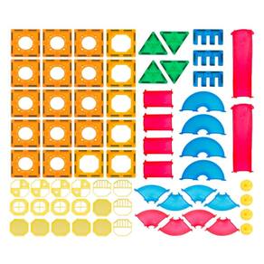 Conteúdo da Embalagem: - 27 peças magnéticas - 18 peças de encaixe - 16 peças para montar tubos - 02 peças para rampa - 04 bolas - Acompanha cartela de adesivos