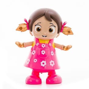Descrição completa A boneca musical dançarina é um brinquedo muito interativo para as crianças, ela diverte e entretém os pequenos com seus movimentos de dança, músicas e leds. Projeta luzes com os leds laterais.