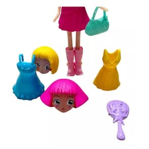 Brinquedo boneca troca de roupa cabelos vestidos bota menina