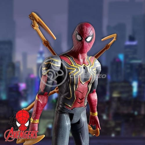Conteudo: 1 Action Figure Homem aranha traje Aranha de Ferro 29cm + 4 Garras (Boneco possui musica)
