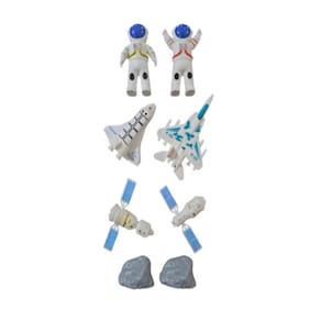 Especificações: -Cor: Branco -Conteúdo: Boneco Astronauta, Acessórios Espaciais diversos (satélite, jato espacial, asteróide e equipamentos) -Material: Plástico -Quantidade de peças: 07 -Tamanho aproximado de produto: 4,5cm de altura x 3cm de largura