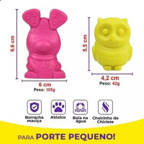 Coruja Medidas: 5,4cm x 4,2cm x 3,1cm Peso: 42g Quantidade: 01 unidade Brinquedo direcionado a cachorros de pequeno porte