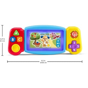 Este brinquedo interativo de aprendizagem parece o videogame dos adultos, mas com funcionalidades para crianças, incluindo os personagens Aprender e Brincar na tela, 2 controles que giram e deslizam e muitos botões divertidos para pressionar.
