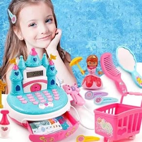Em formato de um Castelo super bonito. Além de ser 100% funcional, emite luzes e sons e também vem com uma boneca Princesa para acompanhar você em suas compras. Acompanha também diversos acessórios.