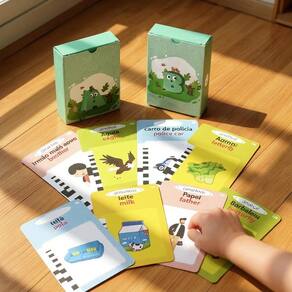 Brinquedo Educativo Bilíngue com Cartões - 224 Palavras em Português e Inglês com Sons de Animais O brinquedo educativo apraxia é a escolha ideal para auxiliar no desenvolvimento da linguagem, vocabulário e pronúncia de forma divertida e eficiente. Através de um console interativo e 112 cartas ilustradas, a criança aprende 224 palavras em português e inglês, incluindo sons realistas de animais, promovendo uma experiência de aprendizado multissensorial. Indicado para crianças em fase de alfabetização e também recomendado para crianças com Apraxia de Fala, e dificuldades de aprendizagem, o produto foi projetado para facilitar a assimilação de palavras e sons com simplicidade e clareza. - Ensino bilíngue em português e inglês - Sons reais de animais - Botão de repetição da palavra - Volume com 5 níveis de ajuste - Desligamento automático após 10 minutos - Uso intuitivo: insira a carta e ouça a palavra Conteúdo da embalagem: 1 console eletrônico interativo 112 cartas ilustradas com 224 palavras 1 cabo USB para carregamento Material: Plástico ABS e papel de alta qualidade Tamanho do console: A - 15cm x L - 11,5cm Tamanho das cartas: A - 9cm x L - 6cm As cartas são divididas em 12 categorias temáticas: animais, veículos, alimentos, frutas, vegetais, mercadorias, cores, pessoas, profissões, formas, natureza e vestuário. O brinquedo apraxia é uma ferramenta moderna e eficaz para introduzir o aprendizado bilíngue e estimular o desenvolvimento infantil de forma lúdica e prática.