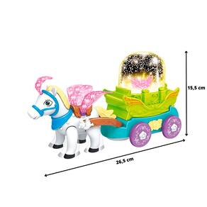 Dê vida aos contos de fadas! Opresente perfeito para estimular a imaginação, trazendo luzes, sons e movimento para criar histórias inesquecíveis de princesas, príncipes e aventuras fantásticas. -Emite músicas alegres e sons encantadores, que ambientam a brincadeira e transportam a criança para o mundo da fantasia. -O cavalo e a carruagem se movimentam sozinhos, incentivando a criança a engatinhar ou correr atrás, promovendo a atividade física. -Promove a criação de narrativas, o desenvolvimento de personagens e a encenação de histórias. Especificações Técnicas: - Material: ABS/Componentes eletricos - Dimensões Aprox.: 15,5cm (ALTURA) x 26,5cm (COMPRIMENTO) - Colorido - Fonte de alimentação: 3 pilhas AA (NÃO INCLUSAS) - Rotação 360° - Idade mínima recomendada: +03 anos - Luz, som e movimento Itens Inclusos: - 01x Carruagem