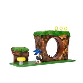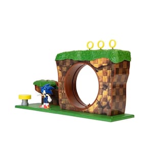 Sonic the Hedgehog é um dos personagens de videogame mais icônicos do mundo de todos os tempos. Junto com seus amigos Tails, Knuckles e Amy, Sonic corre pelo planeta para combater a injustiça e derrotar seu arqui-inimigo, o malvado Dr. Eggman. Com o Sonic - Green Hill Zone Playset você poderá criar suas próprias aventuras Esse incrível playset tem detalhes iguais ao do jogo e mecanismos que possibilitarão deixar a brincadeira mais real. Inclui um boneco do Sonic de 2.5 polegadas 6.3 cm de altura, o famoso círculo deslizante do jogo, três moedas de ouro e uma mola onde ele pode saltar e subir no topo da plataforma. Ele pode dar um looping, para isso é só conectá-lo nos pinos que há dentro do círculo. A partir de agora a sensação de jogar Sonic será muito mais divertida. Imagem meramente ilustrativa.