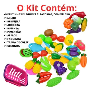 Brinquedo Infantil "Cesta HortiFruti 19 Peças. Frutas e legumes de BrinquedoIdeal para juntar a turminha e se divertir, estimulando e usando a criatividade de suas crianças, nada melhor do que aprender e educar, brincando e de forma divertida.Inventar muitas brincadeiras e fazer a turminha se reunir para brincar de cozinhar e fazer diversas receitas, estimulando o aprendizado e a criatividade. Além de brincar essa cestinha acompanha verduras e legumes o que estimula a alimentação de hábitos saudáveis.Diversão Garantida** Indicação para + 3 Anos**DESCRIÇÃO:Cestinha HortifrutiMaterial: PlásticoMedidas Aproximadas: 7 x 15 x 12 cm (AxCxP)Acompanha:01 Cestinha06 Verduras / Legumes sem Corte (Milho, Beringela, Acelga, Abóbora, Pimenta, Pimentão Verde)09 Frutas e Legumes Variados com Crec Crec01 Tábua de corte01 Pratinho01 FacaCertificado de Segurança: INMETRO 300/2002