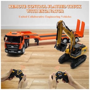 Comande este caminhão semi truck RC de forma realista, com funções avançadas de 9 canais. Além de avançar, retroceder, virar à esquerda/direita, ligar/desligar e funções de apresentação automática, você também controla a escavadeira remotamente. Com 68,58 centímetros de comprimento, este caminhão RC na escala 1:24 é capaz de rebocar vários tipos de veículos. Feito com materiais premium, resistente e seguro, este caminhão semi truck acompanha uma trailer destacável que se estende até 83,82 centímetros. Ideal para presentear crianças de 8 a 12 anos.