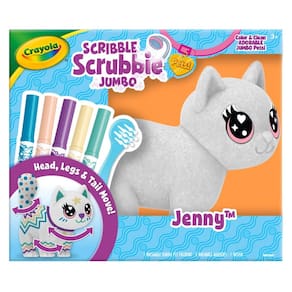 - JUMBO & POSEABLE: Sua família Scribble Scrubbie tem algo GRANDE para comemorar: um animal de estimação Scribble Scrubbie de 6 polegadas! Jenny está pronta para a passarela com cabeça, cauda e pernas móveis!