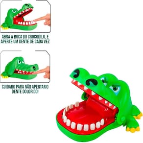 Brinquedo Crocodilo Dentista Polibrinq Divirta-se com o Crocodilo Dentista da Polibrinq! Este jogo para dois ou mais jogadores oferece suspense e diversão enquanto os participantes tentam evitar que o crocodilo feche a boca. Aperte os dentes, mas tenha cuidado – se você escolher o dente errado, o crocodilo pode fechar a boca com um “nhac! ”Surpresa! Com um design cativante, é diversão garantida para toda a família! Prepare-se para momentos de diversão e risadas com este jogo emocionante da Polibrinq!