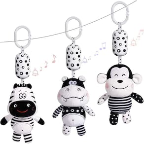 Material Este brinquedo de carrinho de bebê para assento de carro é feito de algodão PP macio, seguro e de alta elasticidade. Brinquedos de aperto de mão para bebês O brinquedo de pelúcia pendurado com formato de animal fofo pode atrair o bebê, esticar a mão para tocar o brinquedo, aumentar a capacidade de identificar animais e exercitar os músculos da mão do bebê. Manter as mãozinhas do seu bebê ativas e exercitar sua capacidade de aderência e coordenação mão-olho para desenvolver habilidades motoras.. Para chamar a atenção do bebê Unidade BB embutida na cabeça, você só precisa apertar um pouco e, em seguida, fazer um som para chamar a atenção do seu bebê. Brinquedo de carrilhão de vento de pelúcia com som. Você pode sacudi-lo para fazer um som doce que pode acalmar o humor inquieto do seu bebê, estimular os sentidos do seu bebê, promover o desenvolvimento auditivo do seu bebê.. Gancho suspenso O brinquedo suspenso tem um gancho portátil, você pode pendurá-lo no berço ou no carrinho, porque seu design de gancho facilita a suspensão. O brinquedo de chocalho pendurado pode acalmar as emoções do seu bebê ao sair, permitindo que ele se adapte rapidamente a ambientes desconhecidos.