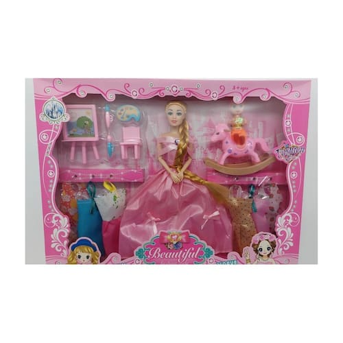Muñeca para que as crianças da casa sejam divididas. Inclui: Otra muñequita más pequeña.Cuadro de Pintura.Dos mini pinçes.Un caballito de juguete.6 vestidos. Você pode conter peças pequenas que podem ser tragadas, Use siempre bajo la supern de un adulto responsable. Em caso de dúvida por ingestão, acidente ou hérnia, consulte um médico com urgência. Produto NÃO tóxico, mantenha-o longe do fogo.