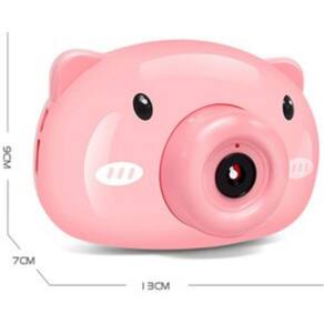 Bolhas de porco de brinquedo fotográfico A câmera engraçada lança bolhas em forma de porco. Quando as bolhas saírem, acenda as luzes e ouça uma boa música, seu filho vai adorá-la! Ele usa 3 pilhas AA para operar. Seu material resistente suporta quedas e evita vazamentos.. INCLUI 2 pulseiras para pendurar líquido em forma de bolha, sem baterias