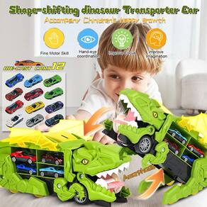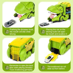 Este brinquedo de transporte de dinossauro 13 em 1 oferece uma experiência emocionante de brincadeira, transformando-se sem esforço em um dinossauro em pé. A grande capacidade de armazenamento e o design portátil garantem segurança e conveniência, tornando-a uma escolha prática para jovens entusiastas de carros e dinossauros. Equipado com uma pista deslizante, as crianças podem desfrutar de carros de metal correndo pelas costas do dinossauro, enquanto o recurso exclusivo de engolir permite que o dinossauro "coma" um número infinito de carros, aumentando a diversão e brincadeiras interativas. É o presente perfeito para aqueles que amam dinossauros e carros - Caminhão de dinossauro 13 em 1 com 12 carros fundidos: este brinquedo de corrida de pista de dinossauro combina as funções com caminhão de transporte, um boneco de dinossauro e escorregador de corrida duplo, oferecendo às crianças várias maneiras de brincar e aproveitar o tempo. Vem com 12 peças de carros fundidos, proporcionando emoção e diversão para as crianças. - Presente perfeito para crianças de 3 a 7 anos: este caminhão de dinossauro oferece uma variedade de funções e interatividade, despertando a imaginação e melhorando a coordenação olho-mão. Seu design exclusivo e jogabilidade multifuncional tornam cada hora de diversão divertida e refrescante. - Experiência interativa realista: além de sua aparência realista, o brinquedo possui uma boca de dinossauro móvel que pode "engolir" carros pequenos, simulando uma ação de captura divertida. Quando transformada em um dinossauro, a pista deslizante na parte traseira oferece um emocionante jogo de corrida de carros - Grande espaço de armazenamento, fácil organização: os caminhões infantis são projetados com amplo armazenamento, com compartimentos feitos especificamente para carros pequenos, com capacidade para até seis veículos fundidos. Ajuda as crianças a manter sua área de jogo organizada enquanto também promove bons hábitos de organização e responsabilidade - Material de alta qualidade, seguro e durável: feito de material ABS durável premium, este brinquedo é feito para durar e suportar o desgaste de brincadeiras prolongadas. Ele também tem uma alça de transporte conveniente na parte superior, facilitando para as crianças levá-lo aonde quer que vá.