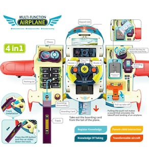 Avião multifuncional, registro de conhecimento, interação pai-filho, conhecimento de tomada, aeronave transformável - Brinquedo multifuncional de carro de avião para crianças: há muitas maneiras de brincar com este avião. Ele pode deslizar uma distância com um leve empurrão. Por outro lado, expanda pode ser alterado para o modo de direção e contém um volante simulado, cartão de identificação, alavanca de aceleração de aeronaves, máquina de chamadas, etc. Todos os detalhes realistas permitem que as crianças experimentem mais jogabilidade. - Direção simulada: gire a chave para ligar o motor e controle o volante para virar à esquerda ou à direita, buzine a tecla de direção para transmitir a rota, a haste, aproveite a decolagem e o pouso. As crianças vão adorar este brinquedo de avião para fingir que ele está voando pelo céu. Um pager destacável fará as crianças desfrutarem do diálogo simulado de paginação do motorista. - Brinquedo de dramatização dos passageiros: seus filhos podem deslizar o cartão para fingir que estão no avião e ouvir os vários sons de alerta após deslizar os cartões. Simule a cena depois de entrar no avião e saiba mais sobre como voar na interação do jogo. - Cofrinho de avião: divertido e motivador para as crianças economizarem, a maneira ideal de economizar diversão! Seu pequeno aviador vai impulsionar a economia com este cofrinho de avião. - Presente prático para crianças: feito de materiais ABS seguros e espessos, resistente a quedas e quebras, bordas lisas, sem rebarbas e não tóxico. Este brinquedo de avião é ótimo para crianças de 3, 4, 5, 6 anos de idade, como presentes de aniversário, presentes de Natal e presentes de chuveiro.
