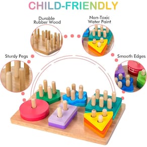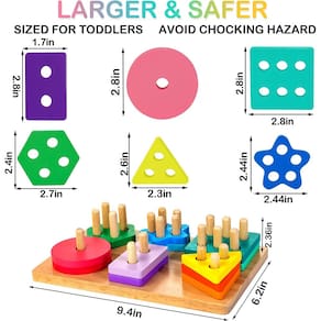 Este brinquedo de madeira de 24 peças inspira as crianças a empilhar as formas coloridas no suporte fixado em ordem, misturá-las ou criar seus próprios jogos! É uma ótima ferramenta para desenvolver habilidades motoras finas, bem como para aprender sobre cores e formas. Divirta-se também com as habilidades de contagem ajudando as crianças a contar as diferentes formas e cores! Seja criativo com os blocos do suporte fixado fazendo faces, empilhando torres ou construindo estruturas ! Especificações: Material: madeira de borracha Peso: 2,2 libras. Idade recomendada: 12 meses ou mais Conteúdo da embalagem : Bloco de construção*24, base com pregos*1 -?Maior e mais seguro?Este brinquedo de classificação e empilhamento atualizado, projetado com blocos de formas geométricas de tamanho maior, é muito mais seguro do que os menores mais comuns. O tamanho de um brinquedo para crianças pequenas é fácil de segurar e protege as crianças do risco de asfixia. -?Durável e adequado para crianças?O brinquedo HELLOWOOD Stack & Sort, com base de madeira de borracha maciça e pinos resistentes, é feito para durar anos. Tinta aquática sem grafite, bordas lisas e brilhantes, sem preocupações para deixar as crianças com este divertido brinquedo educativo. -?Inúmeras maneiras de jogar?Os blocos em forma de 24 peças vêm em 6 esquemas de cores gradientes, inspirando inúmeras maneiras práticas e criativas de jogar. Classifique por forma, cor, crie vários edifícios ou padrões, aprenda palavras, etc., as crianças podem explorar ainda mais jogos para jogar. -?Brinque e aprenda?Este brinquedo de aprendizagem pré-escolar foi projetado para promover conceitos iniciais de matemática e palavras, reconhecimento de cores e formas, imaginação e criatividade, coordenação olho-mão e habilidades motoras finas, de uma forma envolvente, divertida e interativa. O brinquedo de desenvolvimento do bebê será transmitido e se tornará o brinquedo didático favorito das crianças. -?Melhor opção de presente?Este brinquedo Montessori de madeira de alta qualidade, com cores vivas, excelente acabamento e embalagem fofa, é educativo, divertido, seguro e aprovado pelos pais, colocará grandes sorrisos em rostinhos fofos.