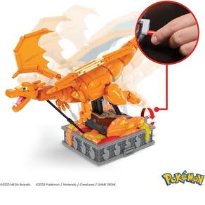 •O conjunto de construção com 1664 peças apresenta movimento autêntico: a manivela pode ser girada para ativar o movimento do Charizard. •Charizard mecanizado, altamente detalhado e montável, com base para exibição. •As asas, pernas, braços, cauda e cabeça podem ser posicionados em infinitas opções de exibição.