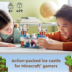 O magnífico LEGO Minecraft The Ice Castle (21186) coloca toda a criatividade, ação e diversão reconfigurável do jogo Minecraft nas mãos de jogadores com 8 anos ou mais. Os jogadores de Minecraft podem explorar infinitas oportunidades para construir, jogar e exibir com este conjunto versátil. Os personagens incluem o Guerreiro Real, um yeti e um grupo hostil de esqueletos e zumbis prontos para atacar o castelo de brinquedos. Características práticas incluem um lançador nas muralhas do castelo que dispara flechas contra o inimigo em avanço. Há uma riqueza de acessórios autênticos, como um caldeirão para misturar poções, um baú de tesouros repleto de suprimentos preciosos e uma mesa de criação clássica do jogo Minecraft. E, quando a aventura acaba, a estrutura se reconfigura facilmente para inspirar um novo mundo de diversão criativa de Minecraft.