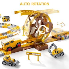 iHaHa 299 peças de pistas de corrida de construção, brinquedos para meninos, 6 peças de carros de engenharia e conjunto de pista de corrida flexível, criar uma engenharia de estrada, presentes brinquedos para meninos e meninas de 6 anos de idade - 299 peças de brinquedos de pista de corrida com tema de construção – Nossos brinquedos de engenharia de construção incluem 250 peças de componentes flexíveis de pista, 1 pista de rotação em forma de U, 2 carros de corrida, 4 mini caminhões de construção, 8 sinais de trânsito, 2 árvores e uma ponte. Configuração avançada para seus filhos construírem seu próprio reino de construção! - Mais acessórios, mais maneiras de brincar – o carro de corrida pode cruzar a ponte e as peças da pista podem ser flexionadas, encaixadas para formar várias formas de pista diferentes, quando o carro entrar na pista em forma de U, ele vai virar automaticamente, adicionando mais diversão aos brinquedos de pista de corrida. Cada caminhão tem braços móveis funcionais. As crianças podem fingir que fazem todos os tipos de trabalhos de construção com esses caminhões e passarão horas trabalhando em brincadeiras criativas e imaginativas. - Crie sua própria estrada – usando a pista em forma de U, a pista em forma de Y, os trilhos de arco e a ponte, este brinquedo de construção STEM ajuda seus filhos a voar sua imaginação para construir seu próprio mundo de pista por conta própria, o que os ajuda a se desenvolver, limitar o tempo de tela, criar tempo para brincadeiras práticas saudáveis. - 6 tipos diferentes de caminhões de construção – configuramos 6 carros de engenharia de simulação com designs e funções exclusivos. Inclui caminhão de transporte, escavadeira, rolo de estrada, caminhão de cimento e 2 carros de corrida. Brinquedos de presente para meninos de 3, 4 e 5 anos. - Presentes de brinquedos para meninos e meninas de 3, 4 e 5 anos – Nosso conjunto de brinquedos de pista de corrida é feito de materiais livres de tóxicos, sem BPA, a segurança sempre vem em primeiro lugar. Cada pista de construção tem um design exclusivo que cabe nas mãos das crianças, portátil para carregar no bolso para brincar em qualquer lugar.