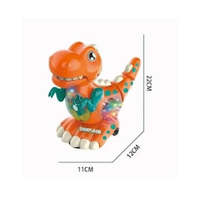 Dinosaur Bailarin with Lights and Sound Toys Children É um divertido modelo musical de dinossauro com função de iluminação, aparência do tiranossauro rex de desenho animado, move cauda, boca e braços, pode ser utilizado para crianças brincarem e melhorarem a cognição. -O modelo é feito de plástico e materiais componentes eletrônicos. - O comprimento do modelo é 22 cm, a largura é 12 cm e a altura é 11 cm - É adequado para crianças, presentes, colecionadores, etc. - REQUER 3 MORCEGOS AA NÃO INCLUÍDOS