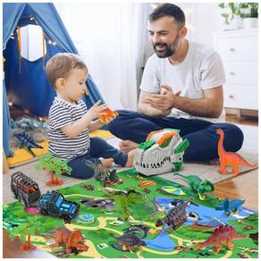 O Conjunto Completo de Dinossauros inclui 12 figuras realistas de dinossauros, uma cabeça de dinossauro removível que se transforma em um cenário, um caminhão de transporte de 2 partes, um mapa do parque dos dinossauros e 2 árvores. Cada dinossauro é colorido, detalhado e de espécies variadas, tornando este conjunto de brinquedos de dinossauro perfeito para estimular a imaginação das crianças. Crie seu Próprio Mundo de Dinossauros: as crianças podem usar a cabeça de dinossauro removível e o mapa para criar sua própria aventura pré-histórica. Esta configuração interativa dá vida à terra dos dinossauros, incentivando a criatividade, narração de histórias e brincadeiras imaginativas. Diversão Educacional: as 12 figuras realistas de dinossauros ajudam as crianças a aprender nomes, formas e características de dinossauros enquanto brincam. Esta abordagem de aprender brincando melhora a memória e o conhecimento, tornando-o um brinquedo educativo ideal para as crianças. Seguro e Durável: Feito com materiais premium, não tóxicos e duráveis, com bordas lisas e arredondadas para uma experiência de brincar segura. Em conformidade com os padrões de segurança de brinquedos infantis, garantindo que as crianças possam desfrutar de horas de diversão sem preocupações. Presente Perfeito para Qualquer Ocasião: Ótimo para aniversários, Natal, Páscoa, Halloween, Ano Novo, festas com tema de dinossauro, decorações de bolo ou como item de coleção. Adequado para meninos e meninas a partir de 3 anos.