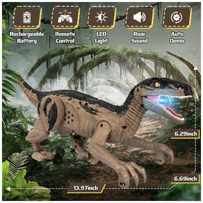 Viva uma experiência de aventura com o Toque de um Botão! Este dinossauro de controle remoto possui um modo de demonstração automático. Basta pressionar um botão para vê-lo andar e começar a rugir! Com três efeitos sonoros realistas, ele traz o mundo pré-histórico à vida, criando uma experiência de jogo imersiva que desperta a curiosidade e a imaginação das crianças. Com uma aparência realista e movimento autêntico, este dinossauro velociraptor é projetado com texturas detalhadas, olhos 3D e uma postura de caminhada natural, trazendo os dinossauros da era jurássica de volta à vida. O movimento suave e os detalhes vívidos imergem as crianças em um mundo de aventura pré-histórica. Divertido e educativo, esta é uma experiência prática e envolvente para as crianças. Elas podem montar o dinossauro sozinhas, incluindo a fixação do rabo e garras dianteiras, promovendo o desenvolvimento da coordenação mão-olho, pensamento lógico e consciência espacial. Com uma bateria recarregável de alta capacidade, este brinquedo de dinossauro robô está pronto para longas horas de diversão sem trocas frequentes de bateria. Aproveite aventuras mais longas e um uso conveniente em ambientes internos ou externos, sempre pronto para a diversão. O controle remoto utiliza 2 pilhas AA (não incluídas), permitindo um controle suave e responsivo para uma emocionante brincadeira de dinossauros. Ideal como presente para crianças que adoram dinossauros, este brinquedo possui tecnologia de controle remoto 2.4GHz, permitindo que vários jogadores controlem o dinossauro ao mesmo tempo, ideal para interação entre pais e filhos. Uma maravilhosa dádiva que inspira a criatividade e fortalece os laços familiares.