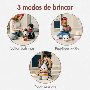 Benefícios de Desenvolvimento Coordenação Motora: através do empilhamento de anéis e do lançamento das bolinhas no funil. Desenvolvimento Cognitivo: Ensina a relação de causa e efeito, reforçando o entendimento de que as ações do bebê têm consequências divertidas. Estímulo Sensorial: Luzes, sons, texturas e formas coloridas adaptadas ao aprendizado multissensorial.