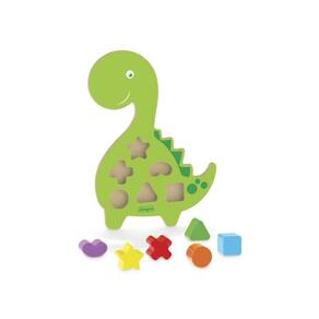 Cada animal apresenta 6 rebaixos com formas geométricas simples, onde a criança deve encaixar as peças plásticas coloridas que acompanham o produto.
