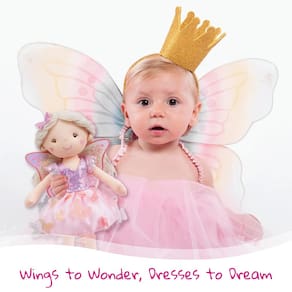 - Fairy Wings: asas bordadas em rosa brilhante completam o visual mágico de Lunabelle.