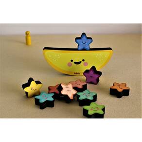 - Brinquedo de madeira Equilibrando Estrelinhas, da BaBeBi - Cód. 6031. - Esta brincadeira desenvolve a coordenação motora. Podendo ser jogado só, em dois ou mais, quem não derrubar a pilha continua ou ganha o jogo. - Indicado para crianças a partir de 2 anos. - Dimensões da Lua: 20 x 2 x 8 cm. - Contém 1 Lua e 10 Estrelas. - Feito de madeira de Reflorestamento e Certificada. - Possui o Selo Abrinq e o Selo de Segurança do Brinquedo do InMetro: CE-BRI/TUV-0018712.0 . Ean: 07898102626319