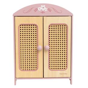 Charme e organização para o mundo das brincadeiras\n \nO Guarda-Roupa de Boneca com Palha Büp Baby é a peça perfeita para guardar e organizar os acessórios das pequenas bonecas com elegância e delicadeza. Produzido em madeira resistente e com detalhes em palha natural, o móvel combina estilo vintage e acabamento artesanal, criando um visual encantador que complementa o universo lúdico das crianças.\n \nAlém de embelezar o quarto infantil, o guarda-roupa estimula a criatividade, o senso de organização e o cuidado durante as brincadeiras. Cada detalhe foi pensado para oferecer um toque sofisticado sem abrir mão da segurança e da funcionalidade, tornando-se um presente especial e atemporal.\n \nBeleza natural e durabilidade\nO produto é confeccionado em compensado, MDF e madeira maciça, materiais que garantem firmeza e longa vida útil. A palha trançada artesanalmente traz uma textura delicada e acolhedora, enquanto as tintas à base de água e 100% atóxicas asseguram a segurança das crianças durante o uso.\n \nPraticidade e cuidado com a manutenção\nA limpeza é simples: utilize um pano úmido e, se necessário, sabão neutro. Após a limpeza, o produto deve ser seco completamente para preservar a integridade da madeira e a vivacidade das cores. Não é recomendado mergulhar o brinquedo em água.\n \nEspecificações Técnicas\n \nContém: 14 peças\nIdade recomendada: a partir de 3 anos\nComposição: compensado, MDF e madeira maciça\nAcabamento: pintura à base de água e palha natural\nDimensões aproximadas: 38,5 cm x 21,7 cm x 53,6 cm\nCertificação: INMETRO 006954/2025\nCuidados: limpar com pano úmido, evitar imersão em água e secar completamente após o uso\nAviso: imagens meramente ilustrativas; as cores podem variar conforme o produto real