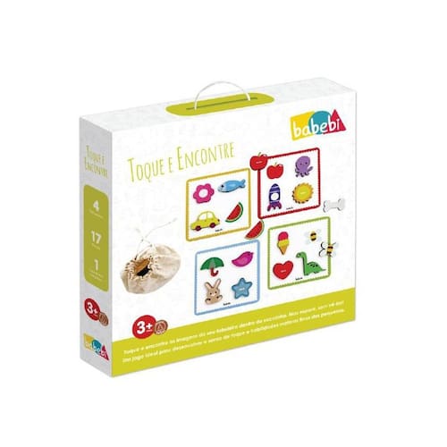 - Brinquedo de madeira Toque e Encontre, da BaBeBi - Cód. 6041. - Coloque a mão no saquinho, tateie uma peça sem olhar e tente adivinhar qual é, nos tabuleiros. - Indicado para crianças a partir de 3 anos. - Cada tabuleiro mede 18 x 18 cm. - Contém 4 tabuleiros, 17 peças e 1 sacolinha. - Feito de madeira de Reflorestamento e Certificada. - Possui o Selo Abrinq e o Selo de Segurança do Brinquedo do InMetro: CE-BRI/SARON-N 00135-19 Ean: 7898102626418