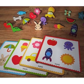 - Brinquedo de madeira Toque e Encontre, da BaBeBi - Cód. 6041. - Coloque a mão no saquinho, tateie uma peça sem olhar e tente adivinhar qual é, nos tabuleiros. - Indicado para crianças a partir de 3 anos. - Cada tabuleiro mede 18 x 18 cm. - Contém 4 tabuleiros, 17 peças e 1 sacolinha. - Feito de madeira de Reflorestamento e Certificada. - Possui o Selo Abrinq e o Selo de Segurança do Brinquedo do InMetro: CE-BRI/SARON-N 00135-19 Ean: 7898102626418