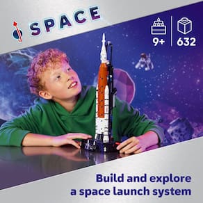 - Monte um foguete autêntico do Sistema de Lançamento Espacial NASA Artemis com 632 peças, desenvolvido para crianças a partir de 9 anos.